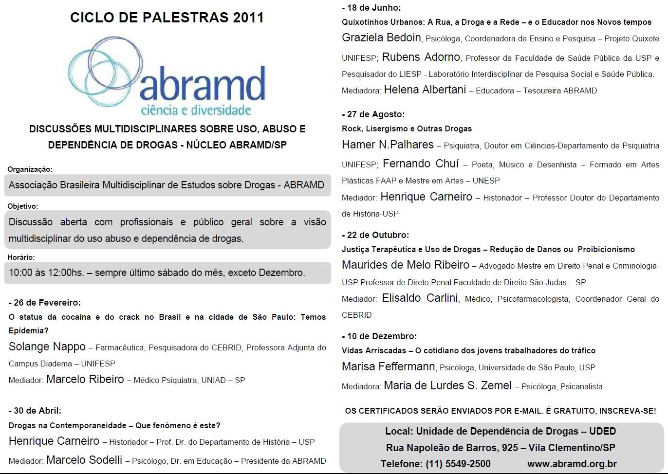 Local: Unidade de Dependência de Drogas – UEDE