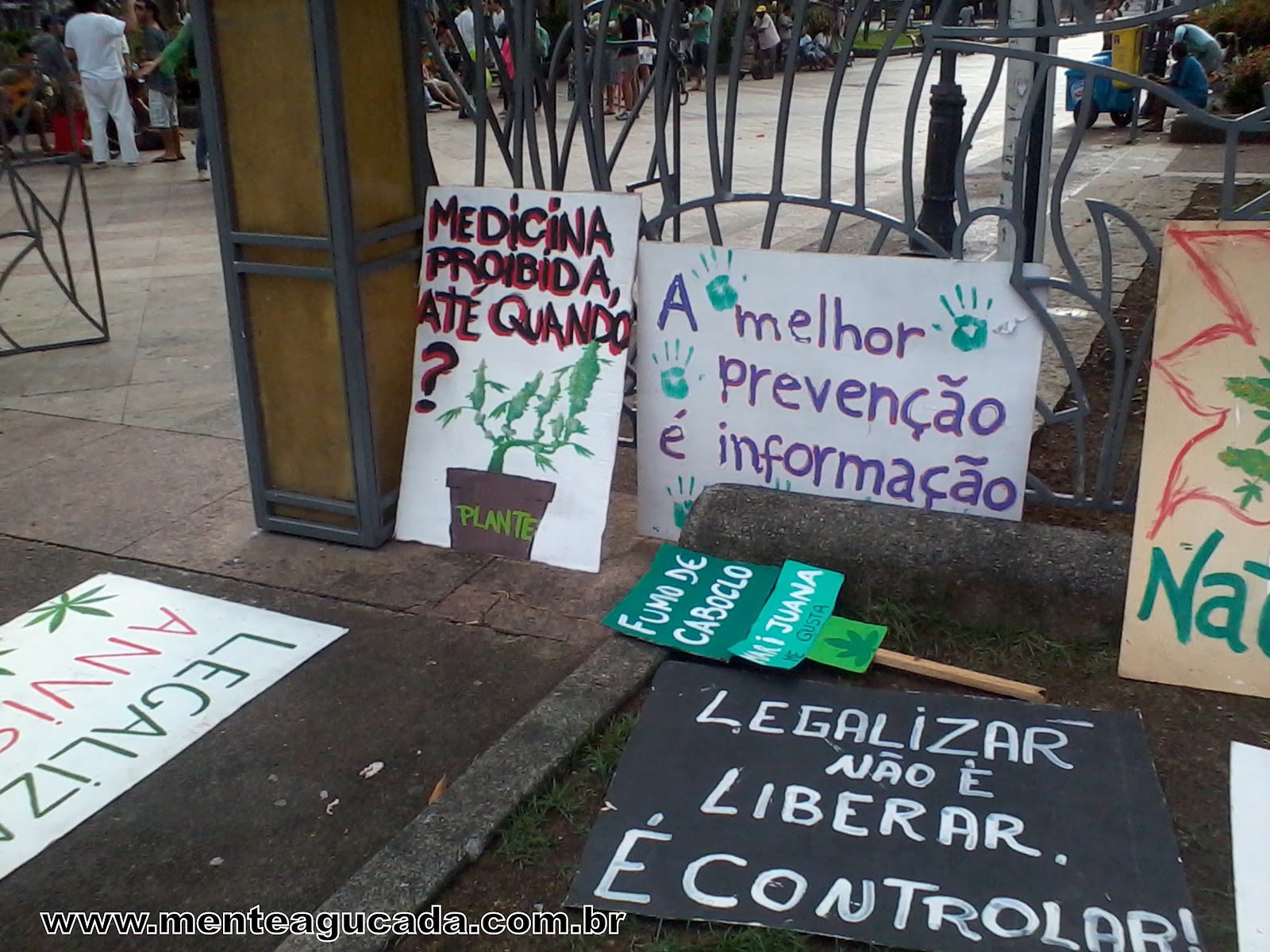 Na concentração, o céu nublado preocupava os organizadores da manifestação. “Como este ano não há nenhuma proibição, por causa da decisão do Supremo Tribunal Federal (que liberou a marcha em 2011), esperávamos contar com mais participantes. Estamos trabalhando na divulgação desta marcha há uns três meses, e estávamos contando com quase mil pessoas, mas infelizmente o clima frustrou um pouco nossa previsão”, afirmou o artista e pesquisador Bruno Rohde, 27 anos, que integra o coletivo Para atrair mais apoiadores, os integrantes estenderam faixas e cartazes com frases como “Descriminaliza já, STF!”, “Cultivo caseiro é redução de danos”, “Maconha não mata ninguém, a proibição mata todos os dias”.