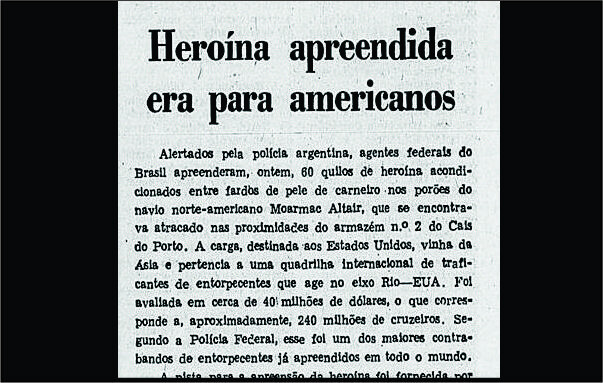 Como relatam os jornais da época, o Mormac-Altair era um navio americano onde, em operação conjunta dos americanos e brasileiros, foi capturada uma carga de 60 quilos de heroÃna em outubro de 1972. Traficantes franceses que moravam no Paraguai e no Brasil foram então extraditados para os Estados Unidos pela PolÃcia Federal brasileira, sem avisar as autoridades francesas, como aconteceu no caso Toscanino, sempre com o general Caneppa à frente das operações.